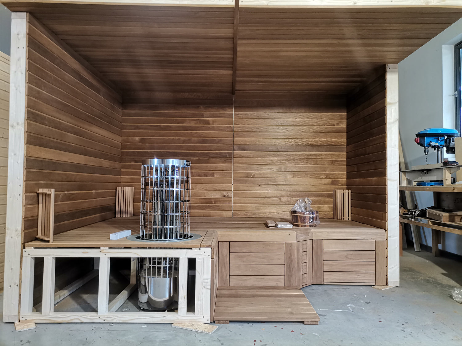 Nach dem du dein Projekt handwerklich vollendet hast. Kannst du das Erlebnis mit Wärme und Ruhe in deine Selbstgebauten Sauna genissen.