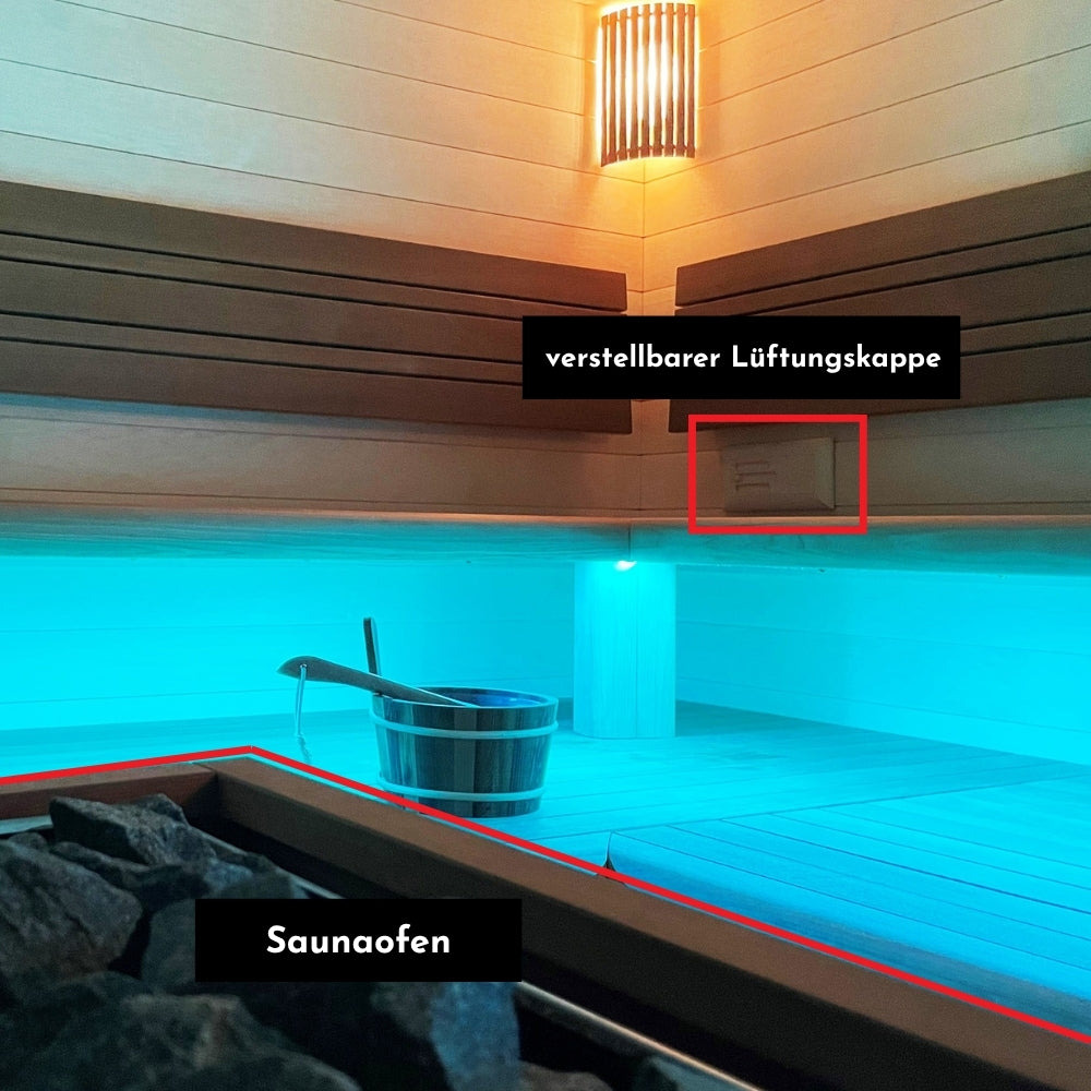 ➡️ Beim Aufheizen geschlossen halten – während des Saunierens leicht öffnen.
