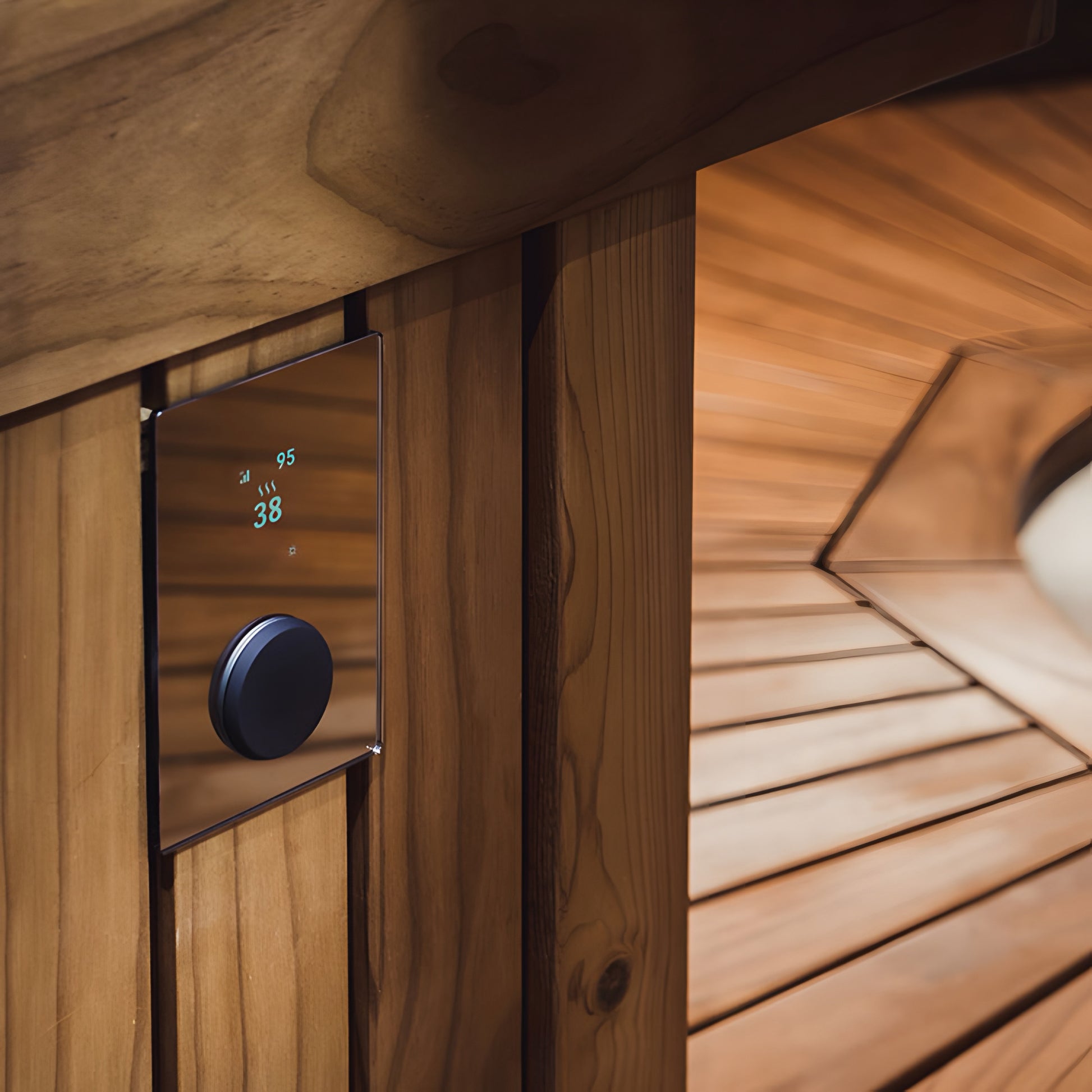 Der UKU Wi‑Fi Mirror ist eine Premium-Sauna-Steuerung mit hochmodernem, spiegelndem Glaspanel. Sie ermöglicht die Steuerung Ihrer Sauna direkt über das Panel oder mobil via HUUM-App – egal, ob Sie zu Hause, im Büro oder unterwegs sind.