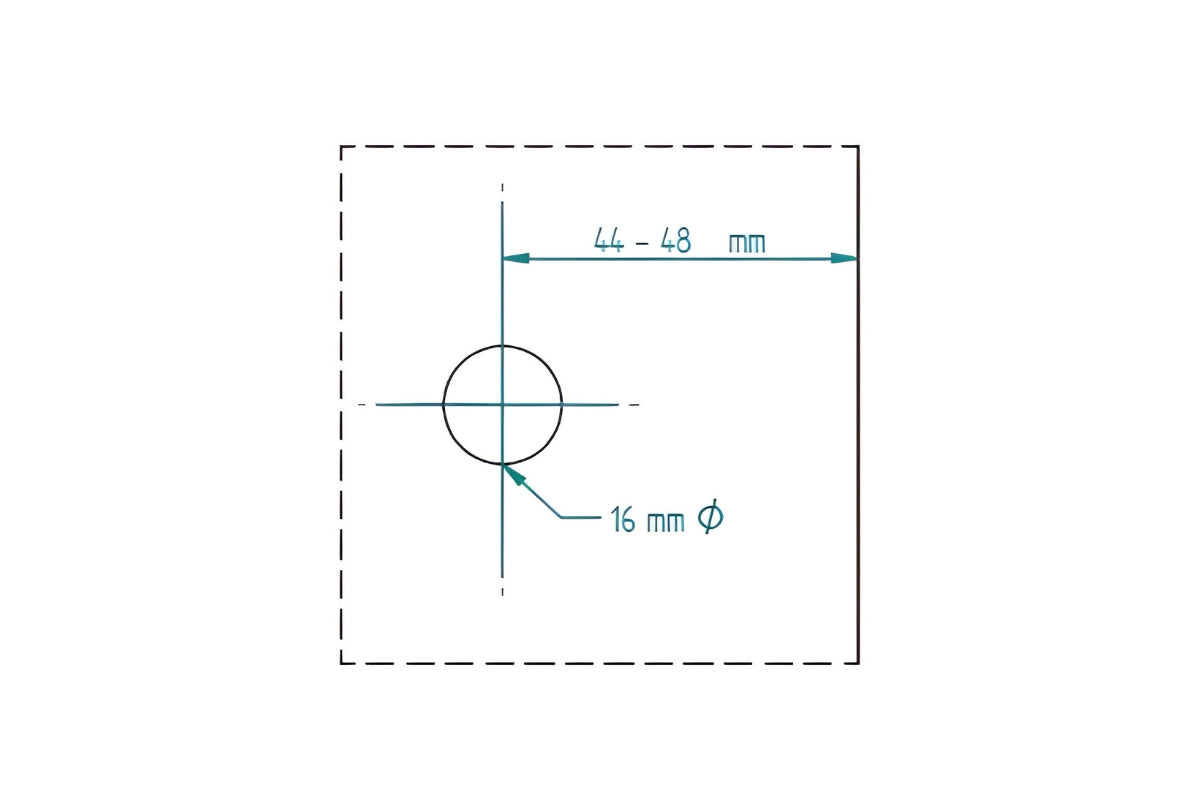 Maße: 26 × 48 mm (Türseite) / 71 × 48 mm (Wandseite)