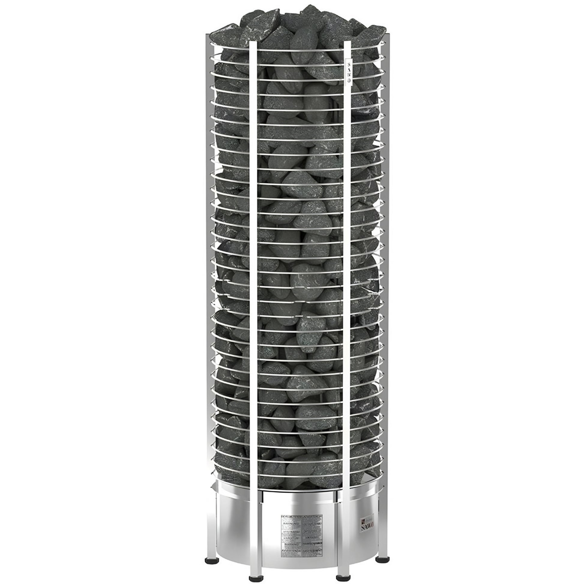 Ein stilvoller, frei stehender Steinturm-Saunaofen mit klassischem Design, robustem Edelstahlgehäuse und vielseitiger Einsatzmöglichkeit – ideal für moderne Saunakabinen.
